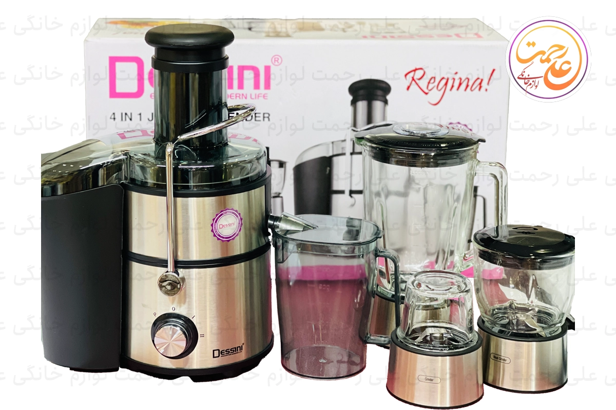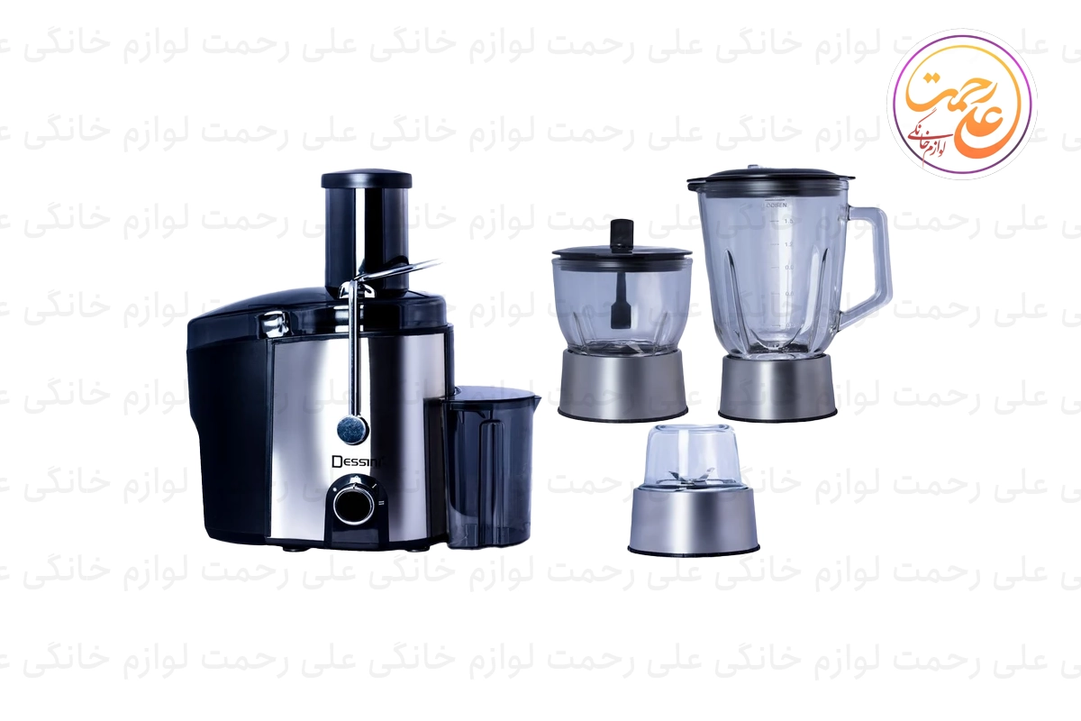 آبمیوهگیری 4 کاره دسینی مدل 222 با طراحی پیشرفته و بدنهای از جنس استیل، یک دستگاه چندمنظوره ایدهآل برای استفاده در آشپزخانه است. این دستگاه با توان مصرفی **1200 وات** عملکردی قدرتمند برای آمادهسازی انواع نوشیدنیها و مواد غذایی ارائه میدهد. از جمله قابلیتهای آن میتوان به عملکردهای **آبمیوهگیری، مخلوطکن، خردکن و آسیاب** اشاره کرد. مجهز به سیستم **ضد چکه**، دو تنظیم سرعت، و عملکرد پالس است که کارایی و راحتی در استفاده را به حداکثر میرساند. این دستگاه دارای مخزن تفاله 2 لیتری و پارچ مخلوطکن **شیشهای با ظرفیت 1.5 لیتر** است. سیستم قفل ایمنی دوگانه و ساختار پایدار، امنیت بالایی را هنگام استفاده فراهم میکند.