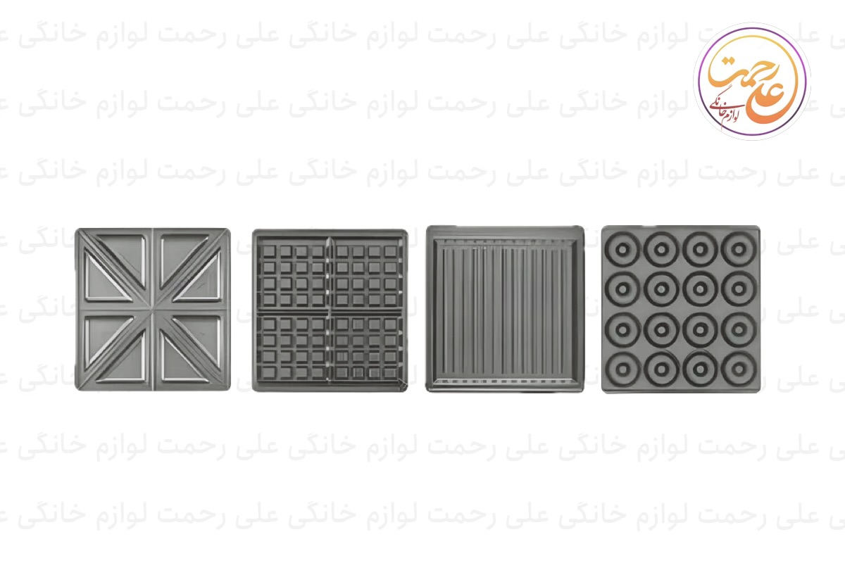 صفحات: دارای ۴ صفحه قابل تعویض برای کاربردهای مختلف (ساخت ساندویچ، گریل، وافل و دونات)