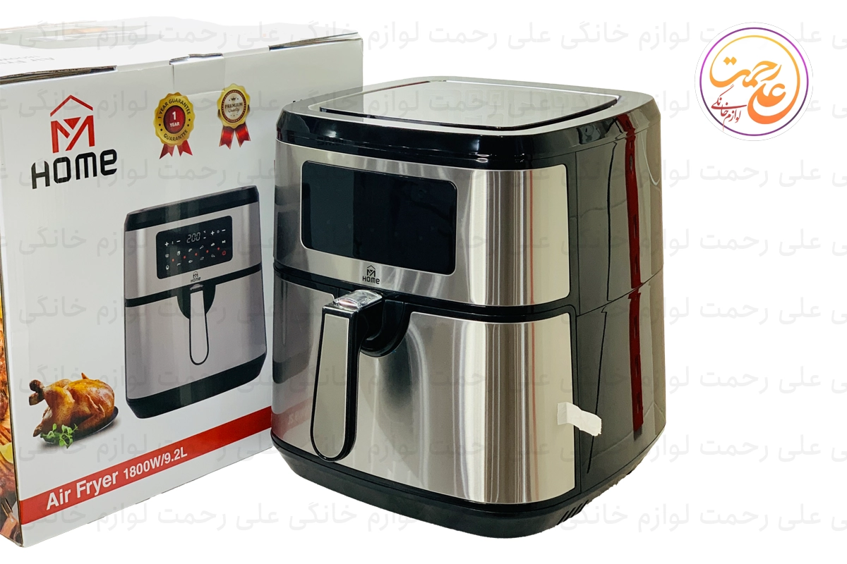 سرخ کن مای هوم 9.2 لیتری مدل 1800 وات یک دستگاه ایدهآل برای پخت غذاهای سالم و کم چرب است. این سرخ کن دارای ظرفیت 9.2 لیتر و توان مصرفی 1800 وات بوده که برای تهیه وعدههای بزرگ مناسب است. با استفاده از فناوری هوای داغ چرخشی، غذاها با 90% چربی کمتر طبخ میشوند. صفحه نمایش دیجیتال و 9 حالت پخت مختلف به شما امکان میدهد تا تنظیمات دقیق زمان و دما را برای انواع غذاها مانند مرغ، استیک، ماهی و غیره اعمال کنید.