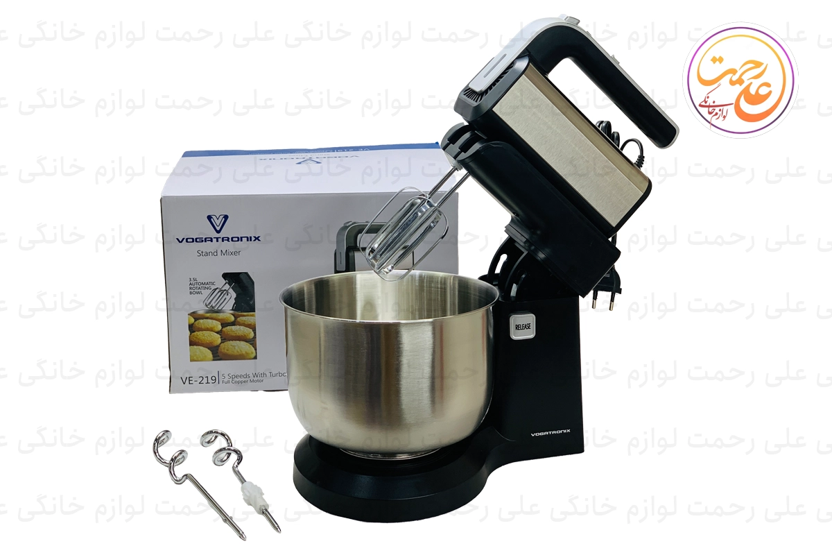همزن کاسه‌ای وگاتی مدل VE-219 با توان 300 وات و کاسه‌ای به ظرفیت 3.5 لیتر از جنس استیل ضد زنگ، مناسب برای انواع فرآیندهای آشپزی و شیرینی‌پزی است. این دستگاه دارای 5 سرعت مختلف و یک عملکرد توربو می‌باشد که به شما امکان می‌دهد تا بسته به نوع مواد غذایی و میزان اختلاط مورد نیاز، سرعت مناسب را انتخاب کنید. کاسه این همزن دارای قابلیت چرخش خودکار است که باعث می‌شود مواد به طور یکنواخت و کامل مخلوط شوند. همچنین طراحی ارگونومیک دستگاه و پایه‌های ضد لغزش استفاده از آن را راحت و ایمن می‌سازد.