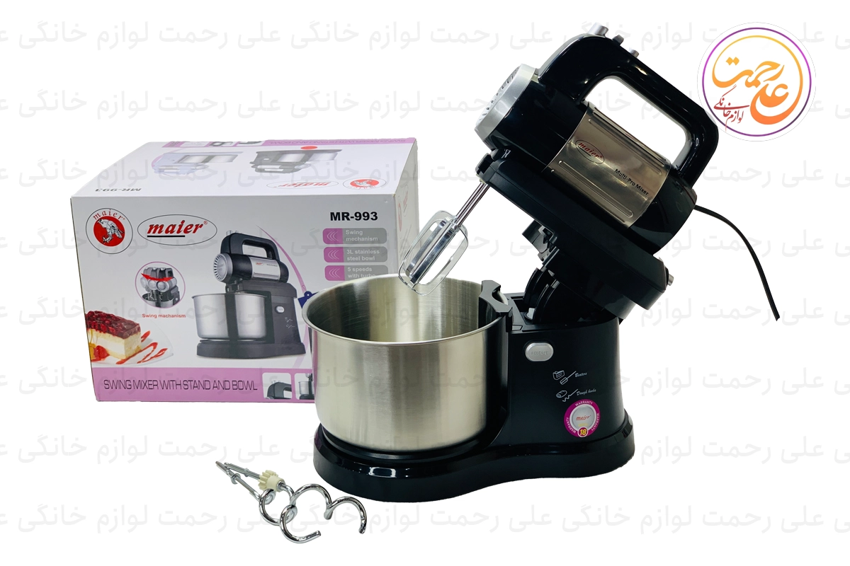 همزن کاسهدار مایر مدل MR-993 یک ابزار پرکاربرد برای تهیه خمیر و ترکیبات مختلف آشپزی است. این دستگاه با توان مصرفی 550 وات، عملکردی قوی و مناسب برای کاربردهای خانگی دارد. کاسه استیل ضد زنگ با ظرفیت 3 لیتر به شما امکان میدهد تا مقدار مناسبی از مواد را برای هم زدن یا ورز دادن آماده کنید. این همزن دارای 5 سرعت قابل تنظیم به همراه عملکرد توربو است که کارایی و سرعت بیشتری را به شما میدهد. طراحی ارگونومیک و قابلیت حرکت چرخشی بازو برای ترکیب بهتر مواد نیز از ویژگیهای برجسته این محصول است.