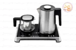 - جنس کتری استیل ضد زنگ و جنس قوری شیشه پیرکس: که دوام بالا و ظاهر زیبایی به دستگاه میبخشد.